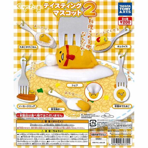 商品説明 販売会社 タカラトミー 価格 200円 商品種類【全6種類】 ・たまごかけごはん ・オムライス ・目玉焼き〜・ソーセージエッグ ・シェフ ・半熟ゆでたまご 商品の紹介画像 【ぐでたま テイスティングマスコット2】思わず食べたくなる!?だら~りとお…