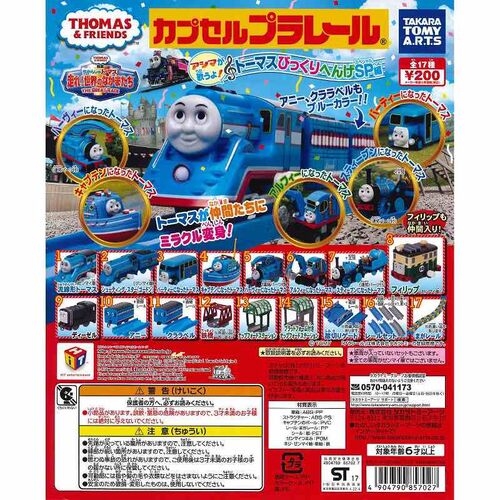 商品説明 販売会社 タカラトミー 価格 200円 商品種類【全17種類】 ・流線形トーマス(ゼンマイ)・シューティング・スター【ゴードン】(ゼンマイ)・バーティーになったトーマス ・キャプテンになったトーマス ・ハーヴィーになったトーマス ・アルフィ…
